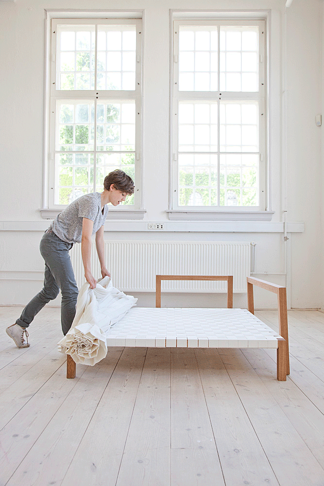 I have created a furniture space were you can interact with different textile structures and objects to create different settings for your everyday life and activities.